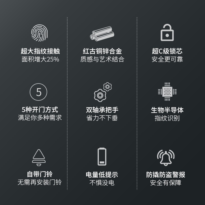 太陽雨智能鎖/紅古銅鋅合金/5種開鎖/防撬報警/鋼體鎖芯/ZW0004
